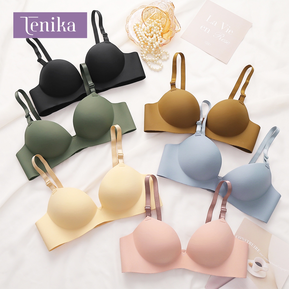 Tenika Wireless Bra Wanita - Seamless Nyaman 24 Jam & Push Up Alami | Bantalan 3D Ultra Tipis + Penyangga Elastis Tinggi