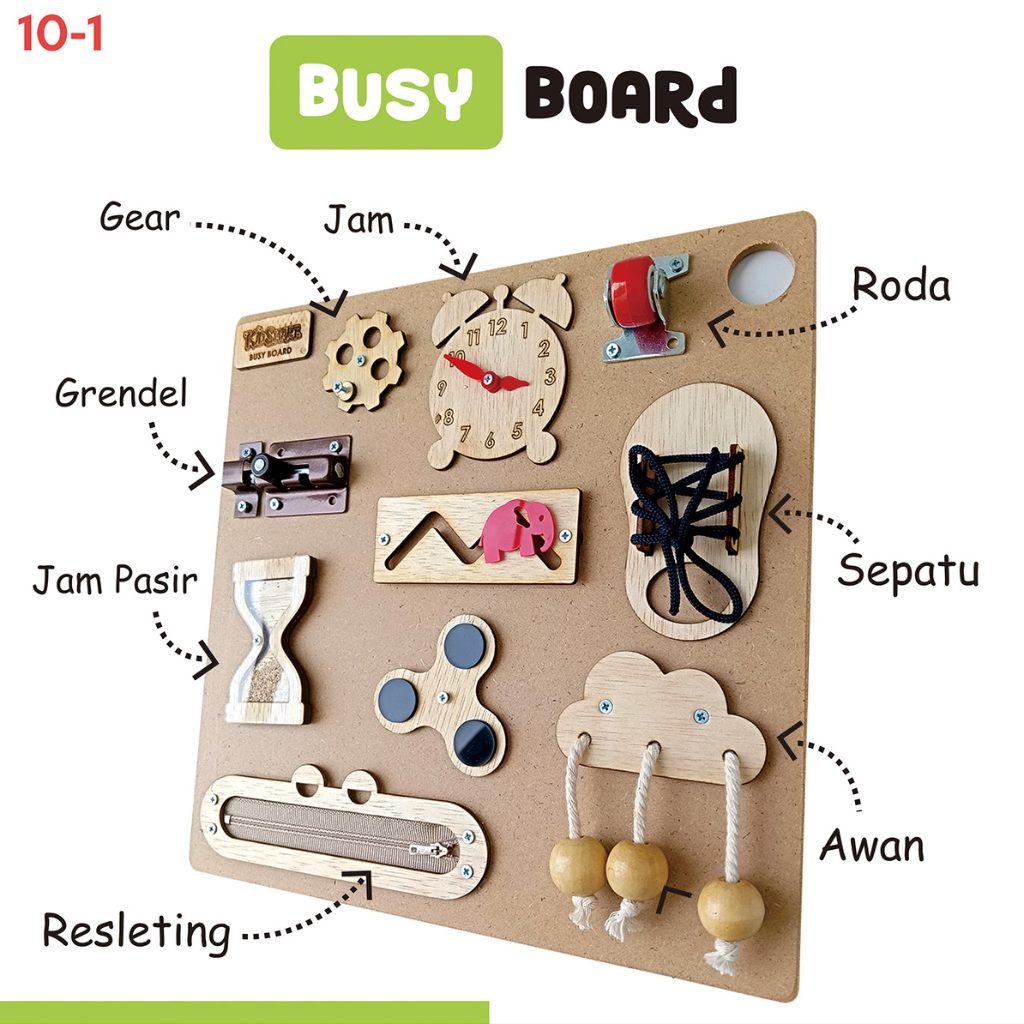 Busy Board 10 in 1 Mainan Bayi dan Anak Montessori Fine Motoric Sensory Play