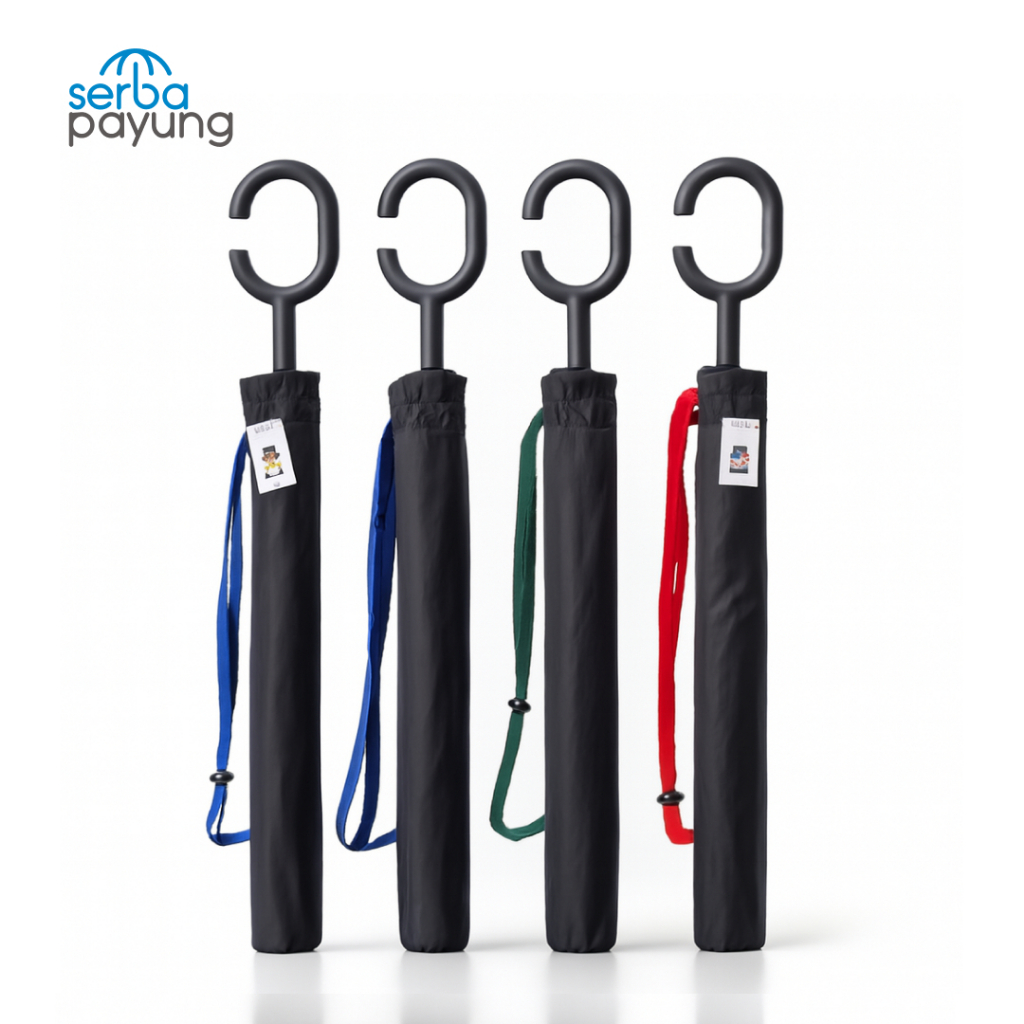 SERBA PAYUNG - Payung Custom Kazbrella | Payung Terbalik Lipat Tahan Angin | Payung Lipat Gagang C Anti Basah Custom Log