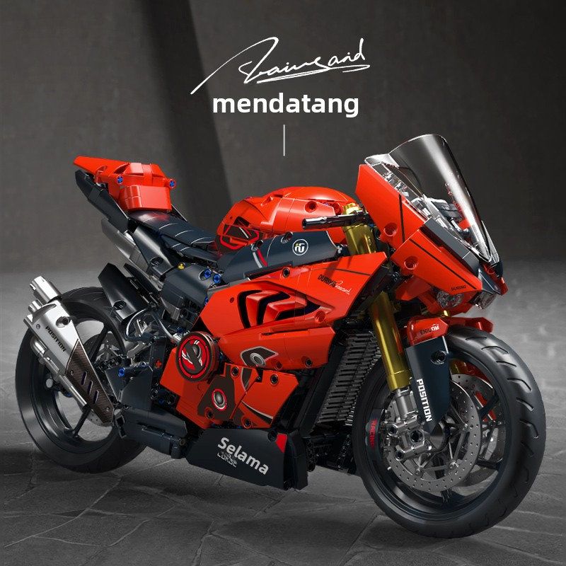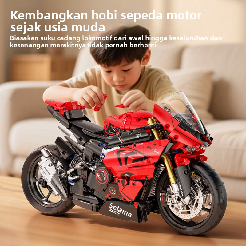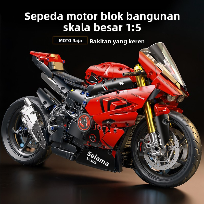 1:5 Mainan Blok Banan Motor Ducati Warna Merah-Putih, Model Motor Balap Klasik, Mainan Blok yang Dapat Dibelokkan, Hadia