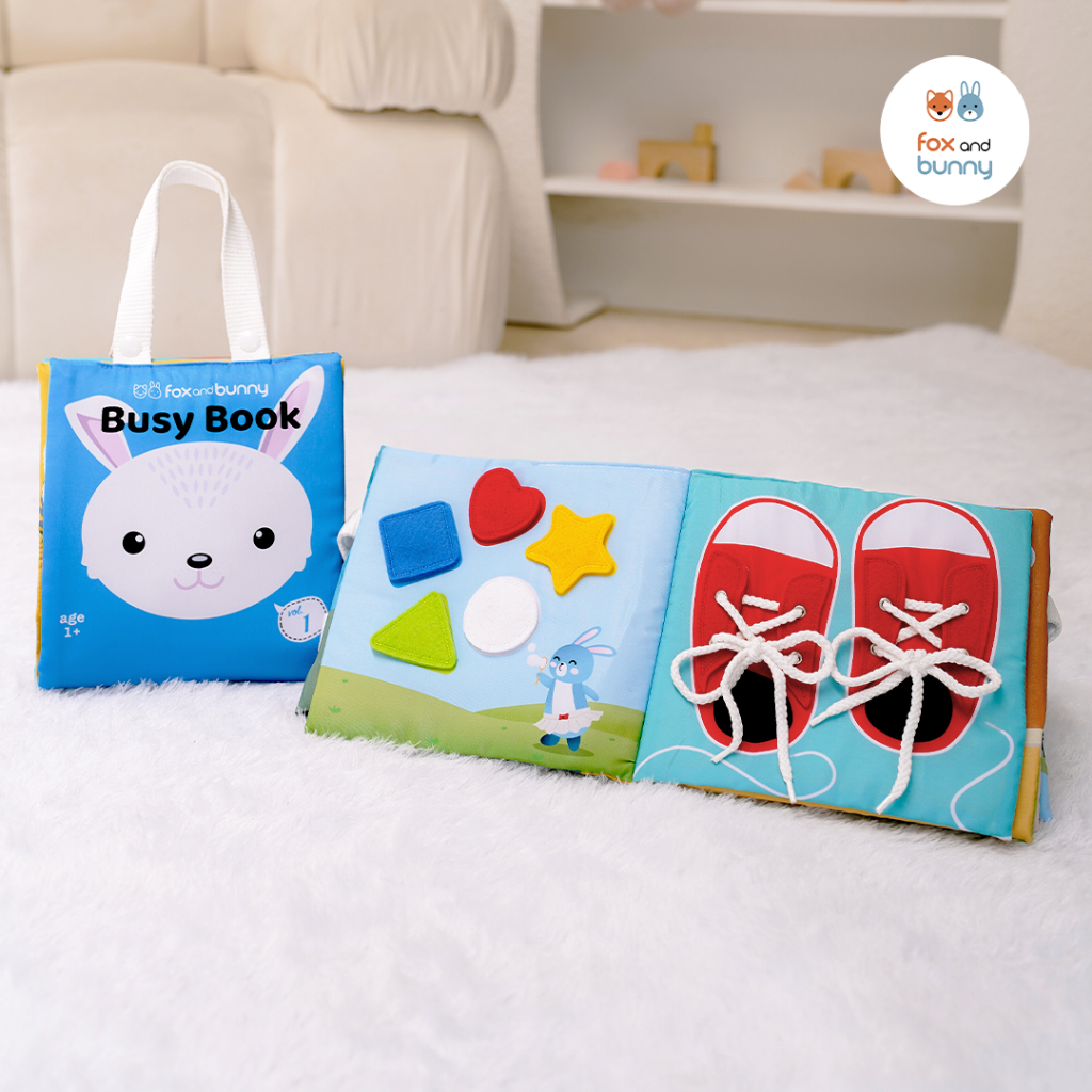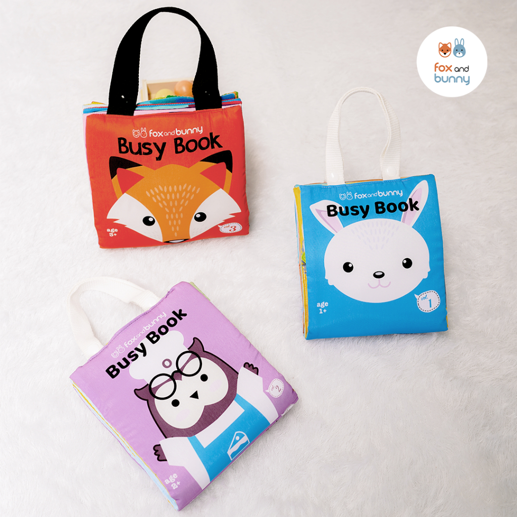 Foxandbunny - Mainan Edukasi Anak Sensorik dan Motorik Usia 1+ Tahun Paket Smart Bundling 3 Busy Book & Grow Chart