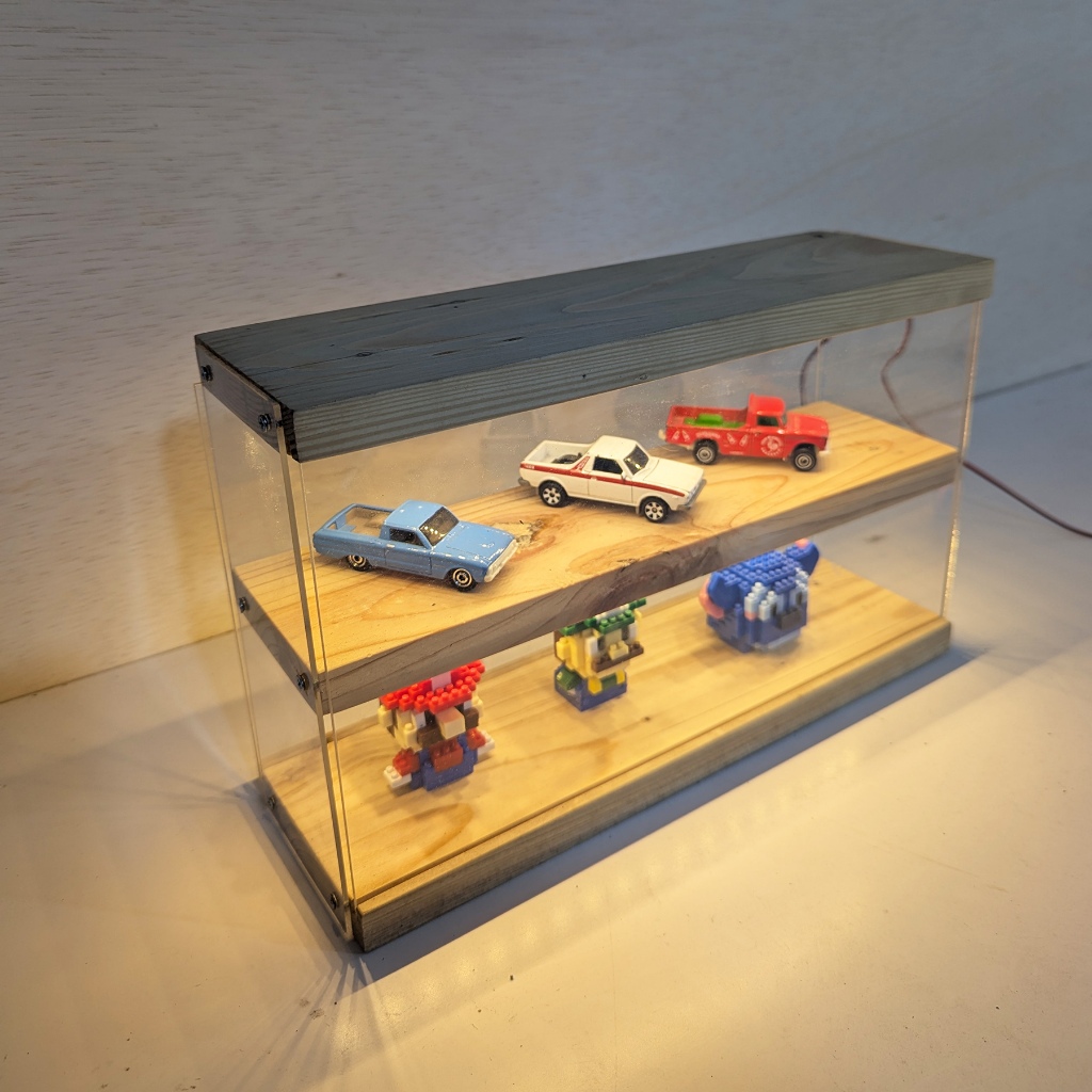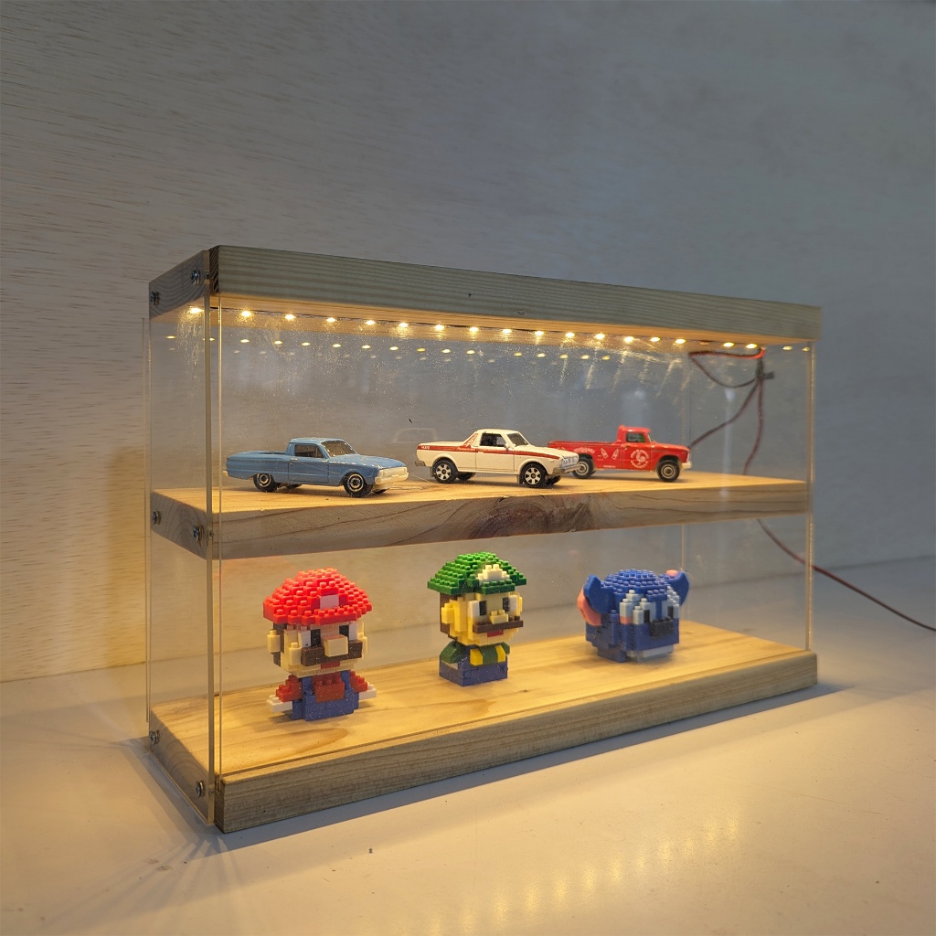 2 Tingkat Rak Diecast Hotwheels Action Figure Kayu Jati Belanda Akrilik
