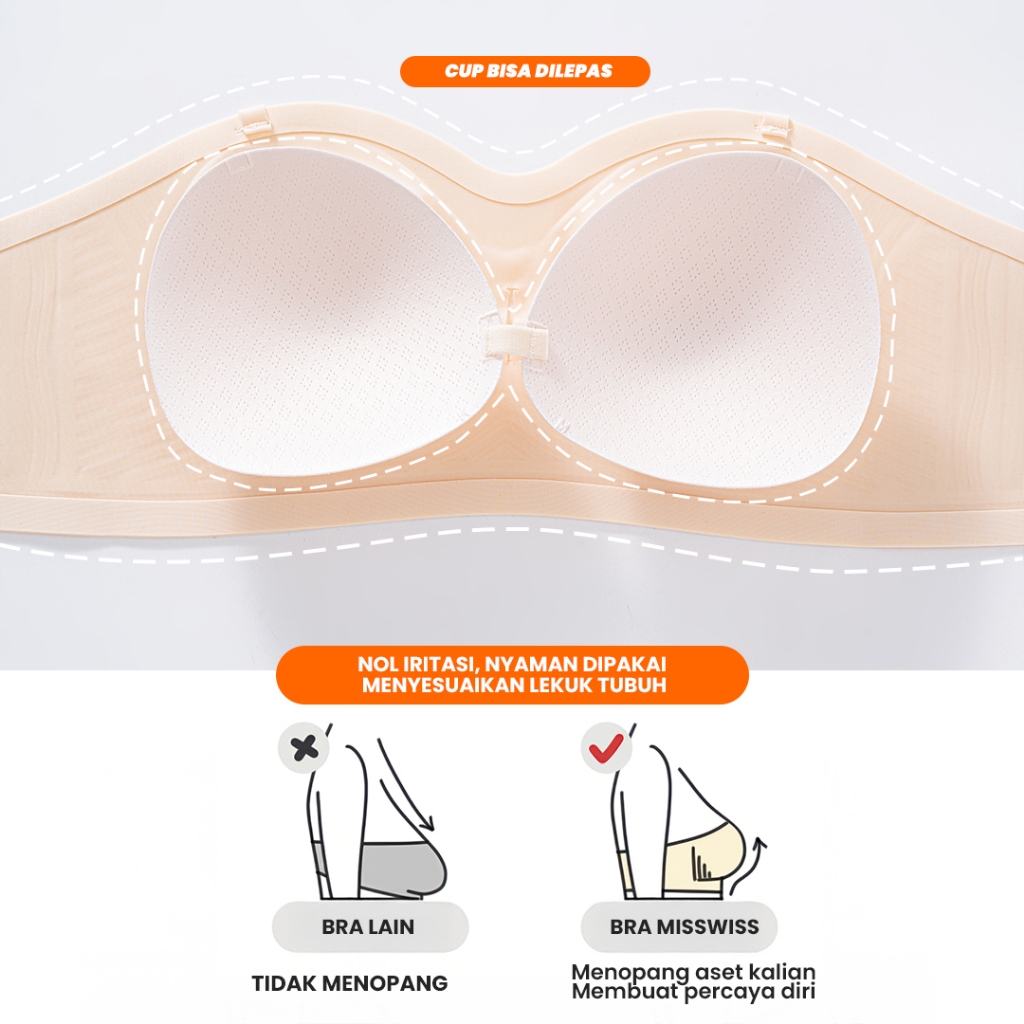 MISSWISS - Strapless Bra Tanpa Tali Seamless,Tanpa Kawat A-C CUP Size S-2XL Ringan&Breathable #5823