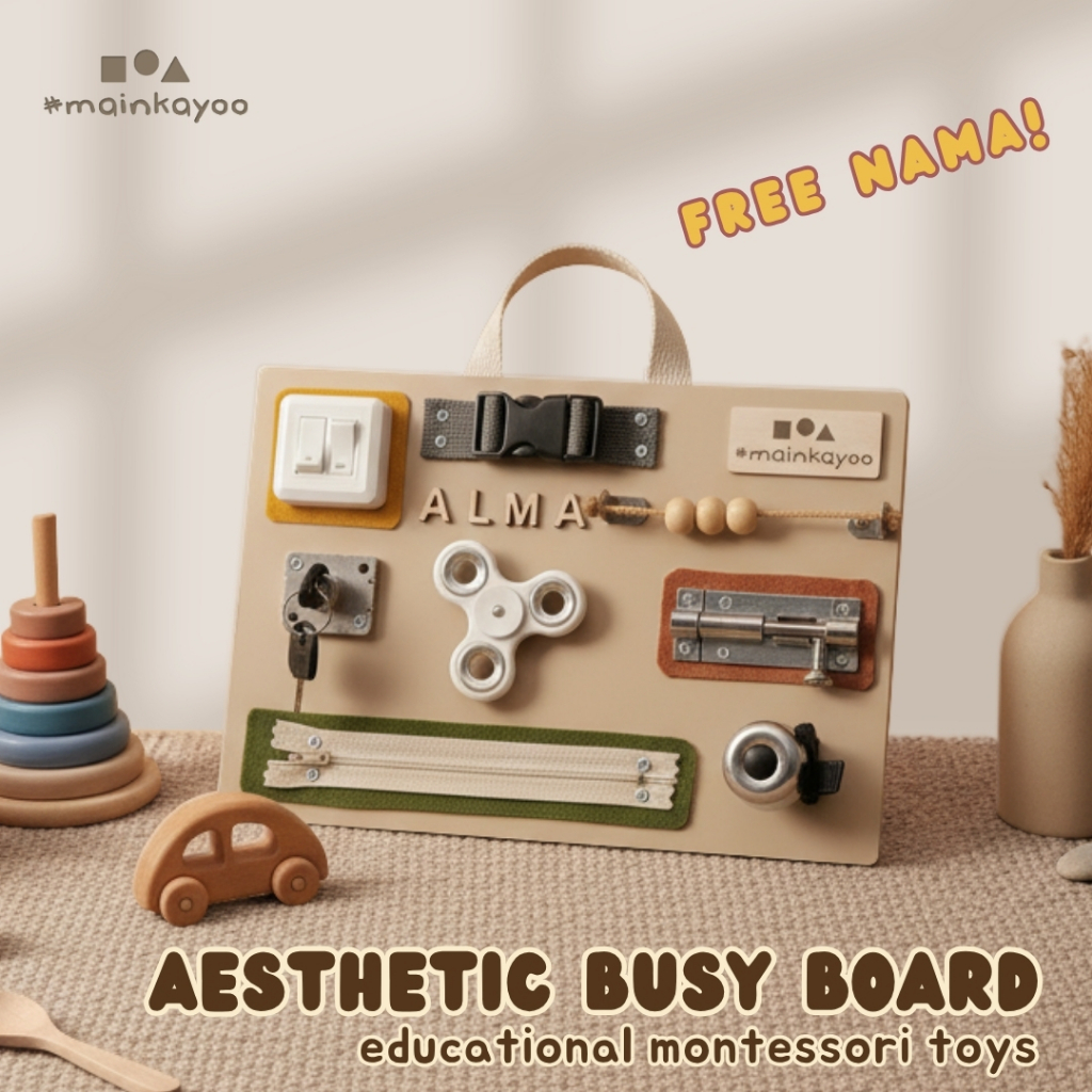 [11.11 SALE] Papan Main - Busy Board 20x30 , FREE NAMA . Mainan Kayu Edukasi Montessori Sensori Anak