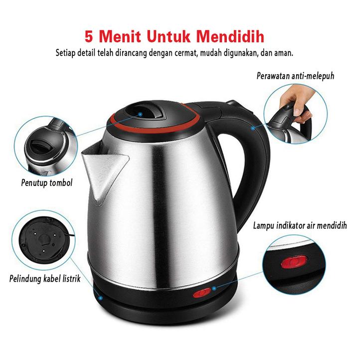 Teko Listrik Stainless Steel Electric Kettle Pemanas Air Electric Kettle Besar Otomatis 2.0L Minuman