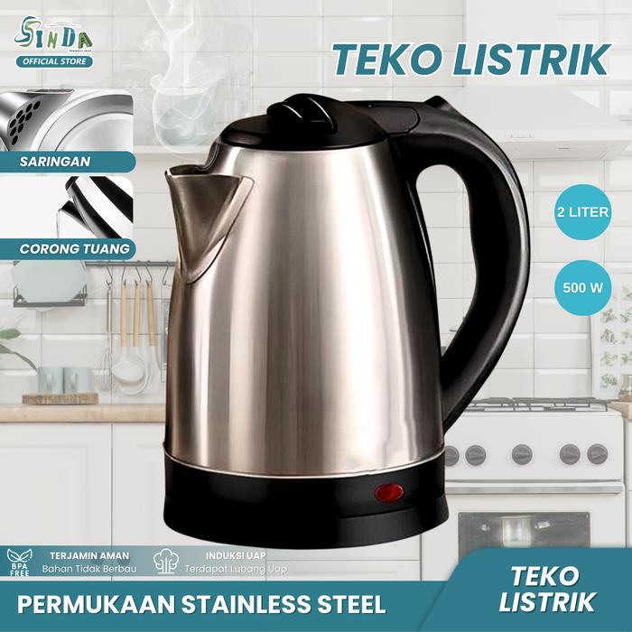 Sinda Teko Listrik Portable 2L - Cepat Panas Praktis dan Elegan Stainless Steel