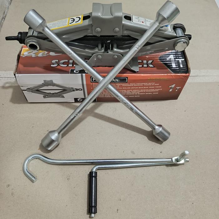 PAKET DONGKAR MOBIL 2 SET / Dongkrak Jembatan 1 Ton Dan Kunci Roda Palang Ukuran 17 X 19 X 21 X 23Mm