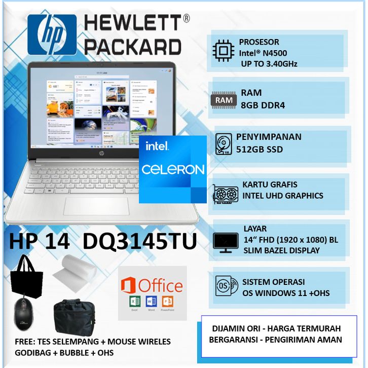 Laptop Slim HP 14s Intel N4500 8GB 512GB SSD 14"FHD BL Win11Home +OHS