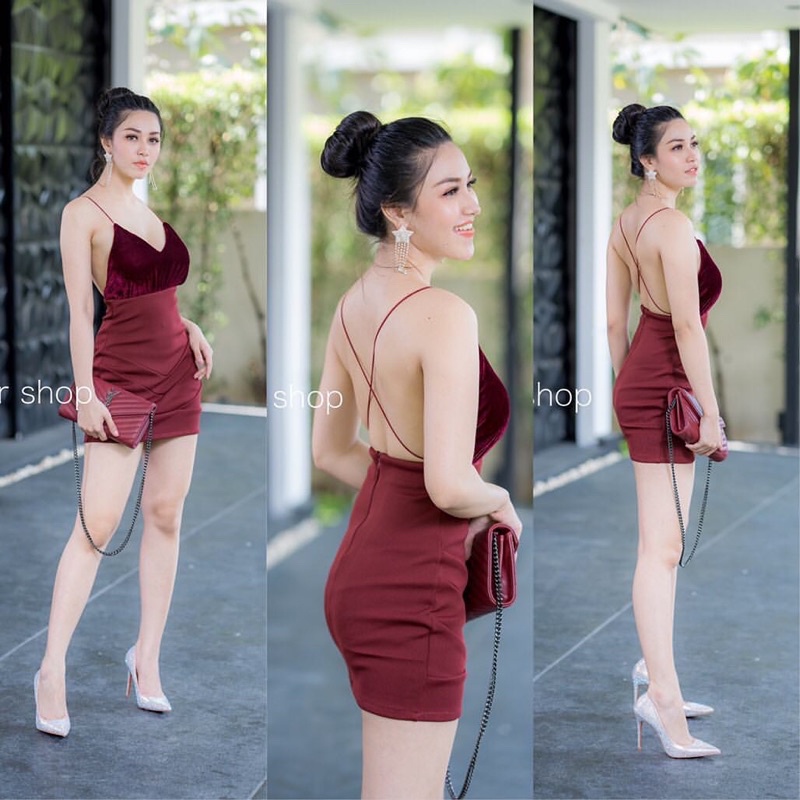 Scotteshop- Winnie Mini Dress Scuba Bludru Backless Bodycon Sexy 782