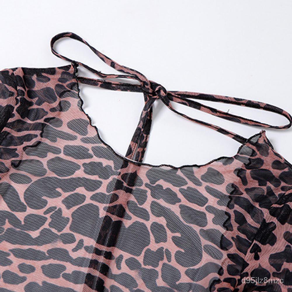 dress korean styledress kondangan wanita Summer Leopard Pattern Flared Sleeves Backless dress konda