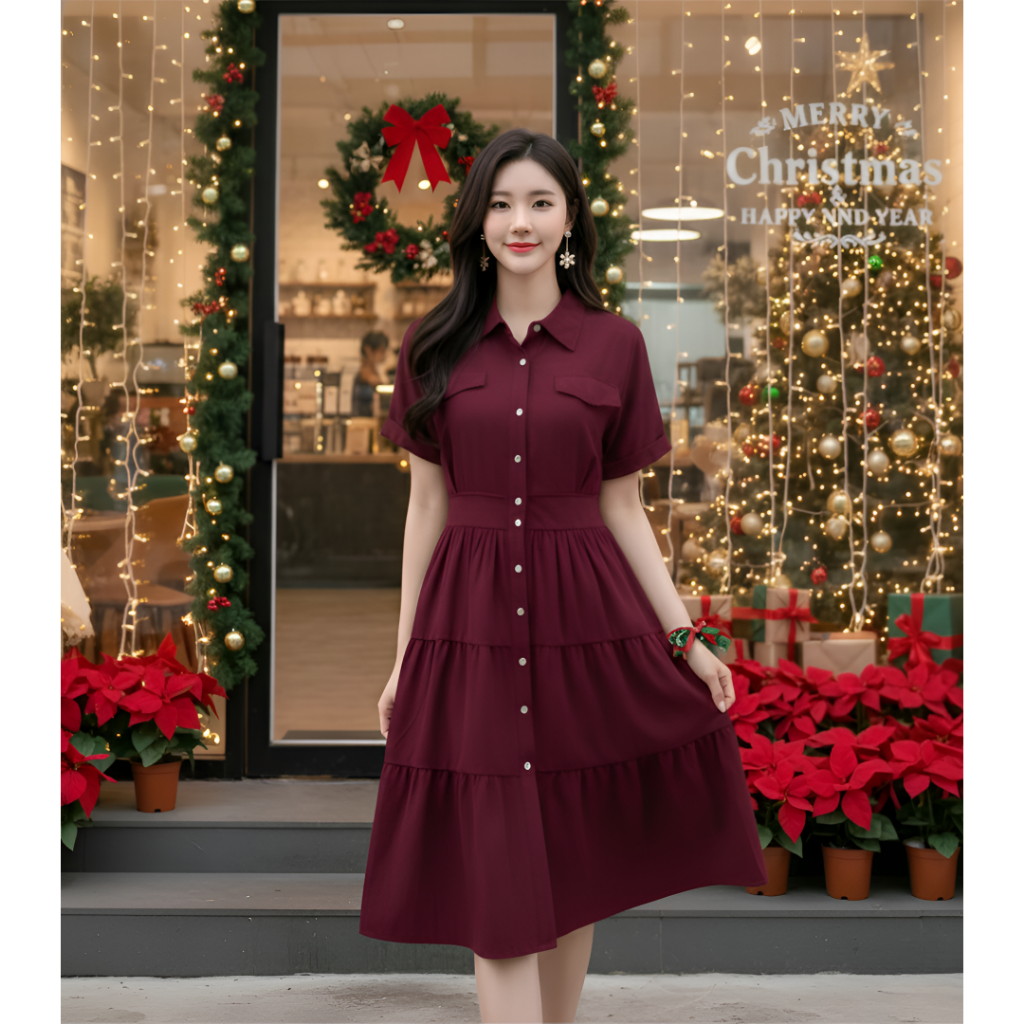[COTTON BELLS] SHERREN DRESS | CHRISTMAS COLLECTION GAUN CASUAL MAXI WANITA PREMIUM | MIDI NATAL KOREA FASHION (CV - D 4