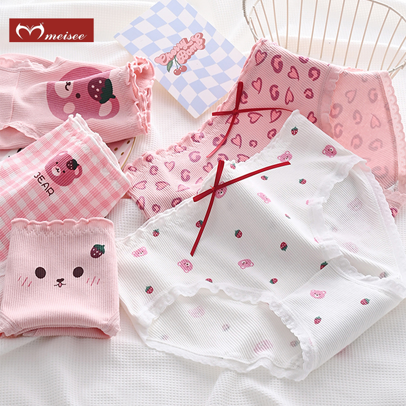 MEISEE 5 Paket Celana Dalam Wanita Katun Remaja CD Cewek Anime Lolita Kawaii Jepang Panties Wanita