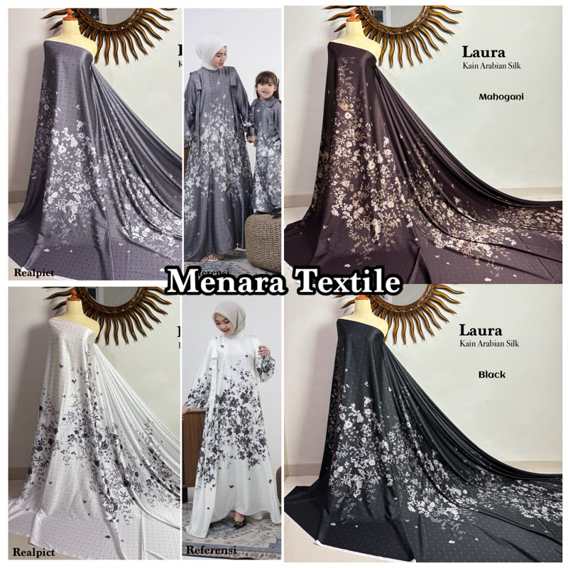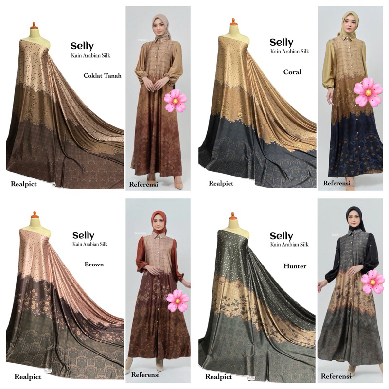 New Bahan Kain Sutra Arabian Silk Motif Mewah Premium Adem Lembut Kain Silk Meteran Coklat Mahogani /