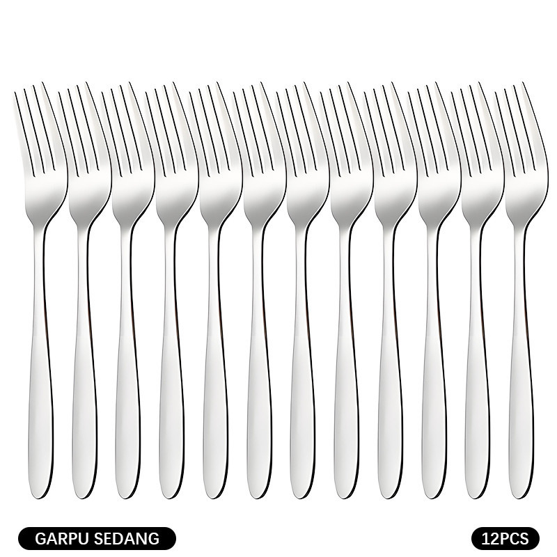 12pcs Garpu stainless tebal / garpu makan tebal stainless / garpu polos stainless