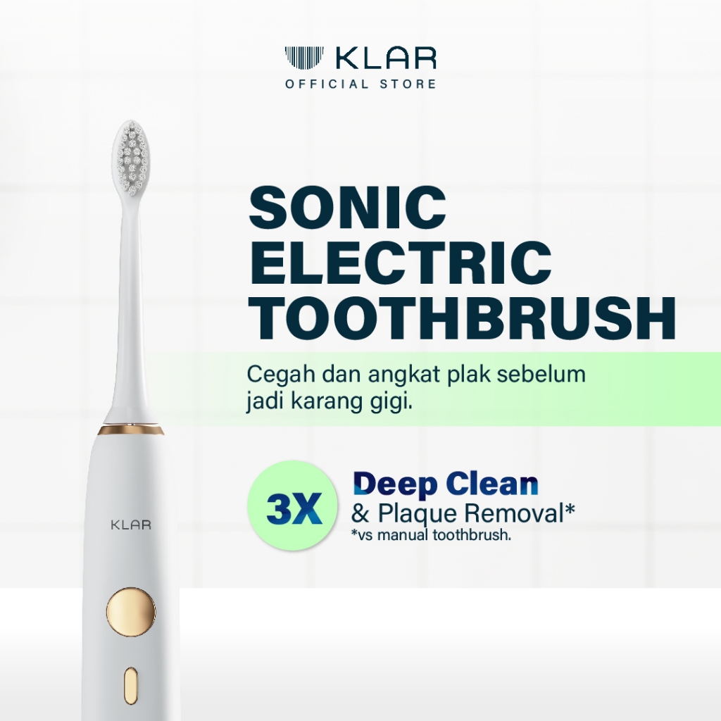 KLAR Sonic Electric Toothbrush - Sikat Gigi Elektrik Dewasa dan Anak - Cocok Untuk Pengguna Behel dan Gigi Sensitif - 2 in 1