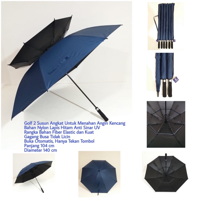 Payung Golf Susun Angkat Besar Jumbo Lapis Hitam Anti UV Lasika