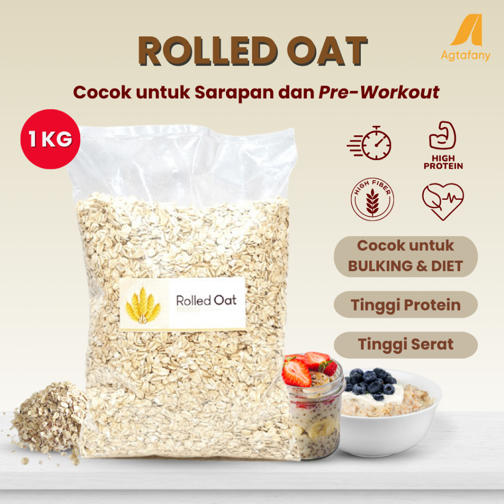 Rolled Oat 1 Kg Gandum Utuh Wholegrain Bulking Diet | Oatmeal Sereal Overnight Sarapan Praktis