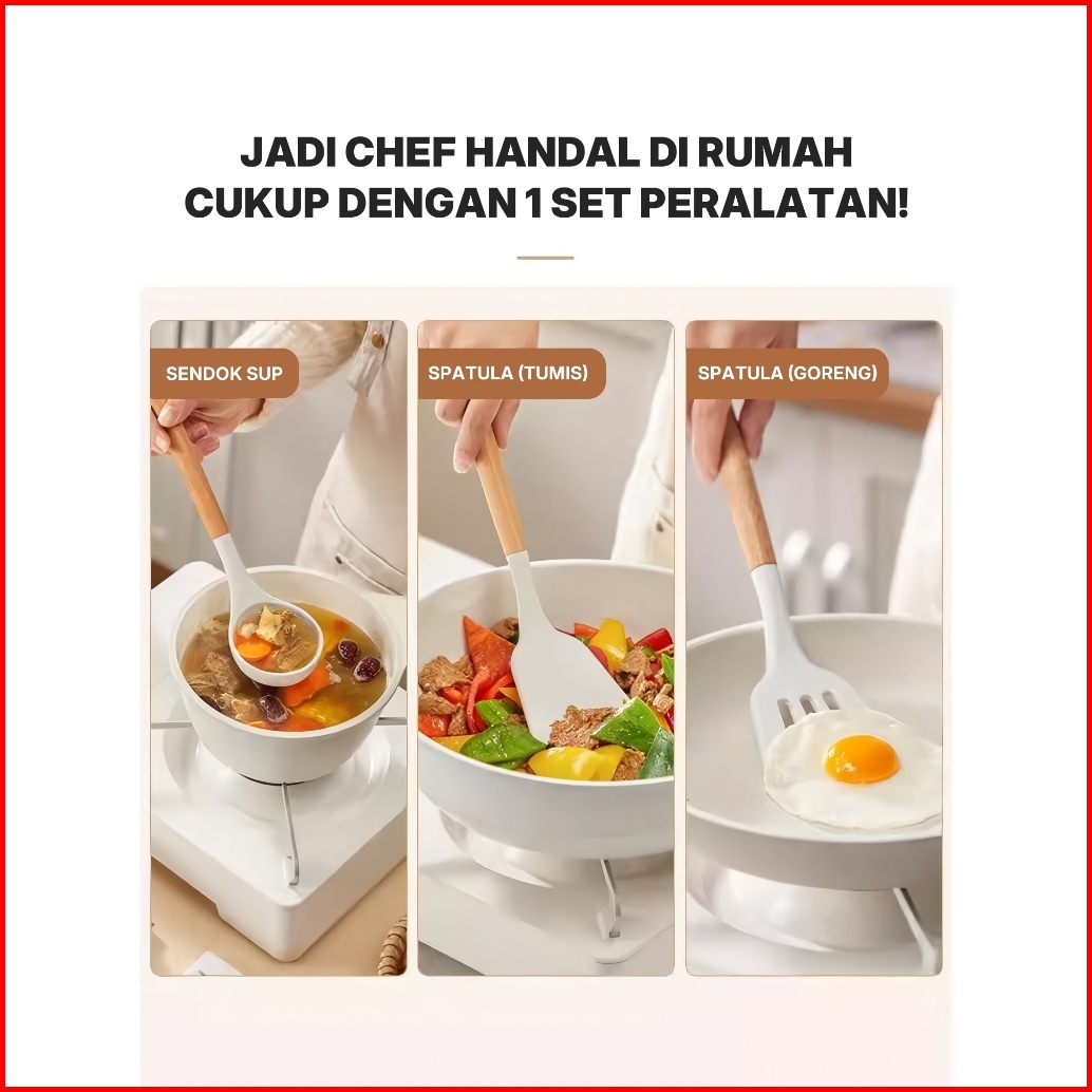 Mullen Spatula Silikon Kuat Alat Masak Tumis Goreng - Spatula Set 3 Pcs