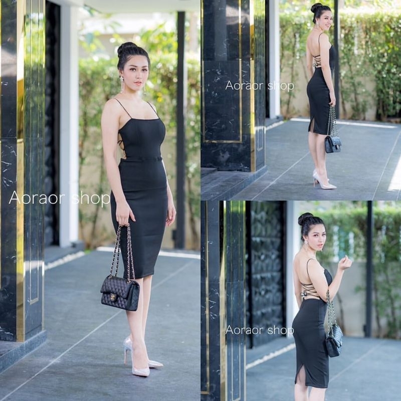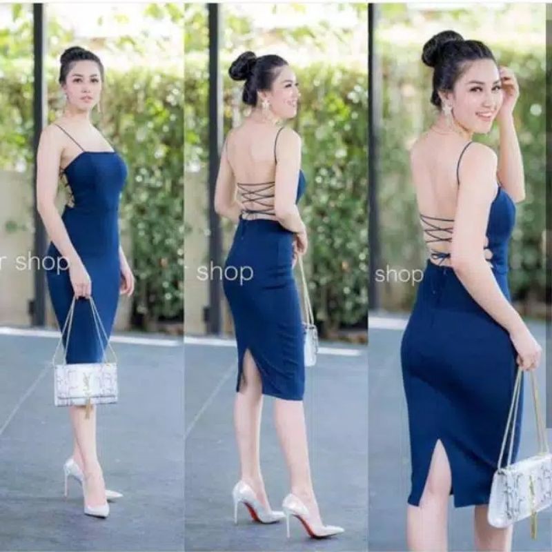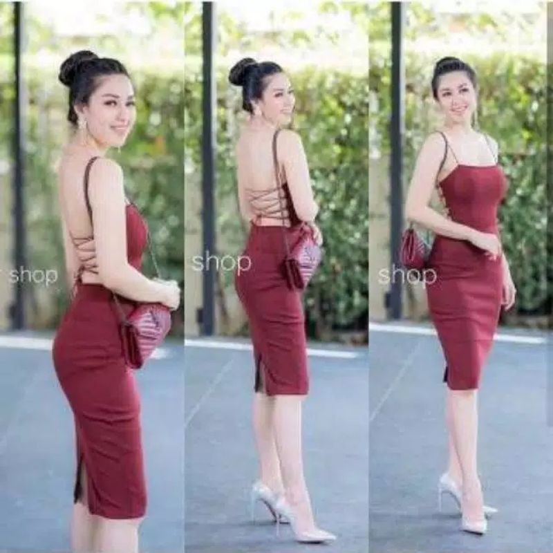 Dania Midi Dress Scuba Bodycon Backless Tali Adjust 501