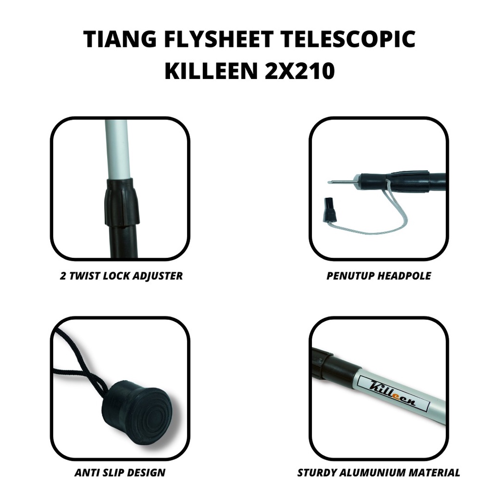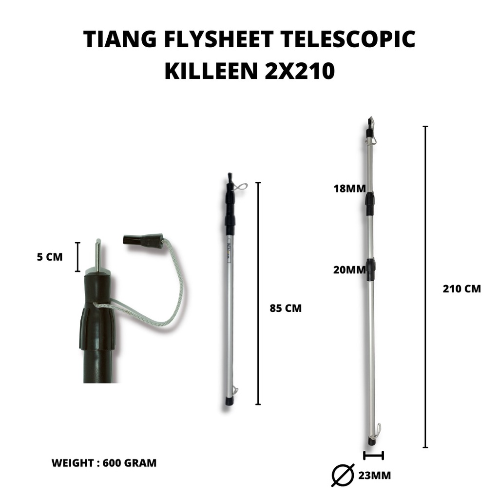 Tiang Flysheet Telescopik Killeen 85 - 260 Cm - Tiang Double - Tarptent Awning Tenda Dome Camperven Tarp Tent