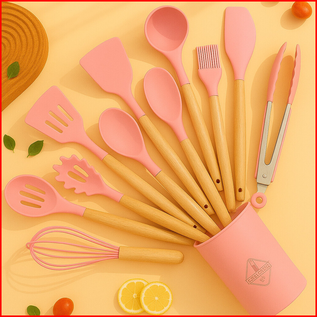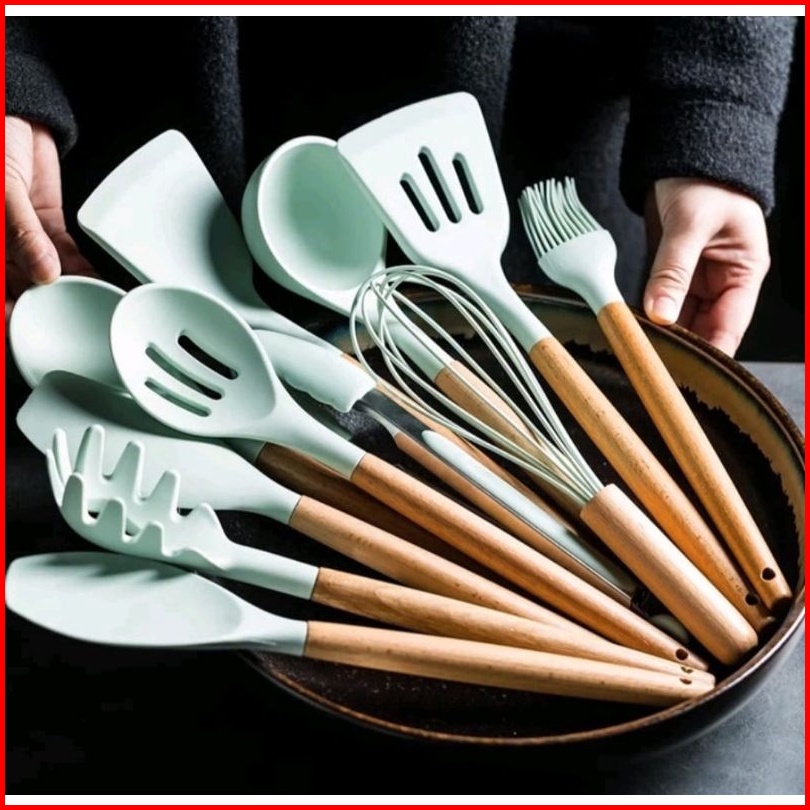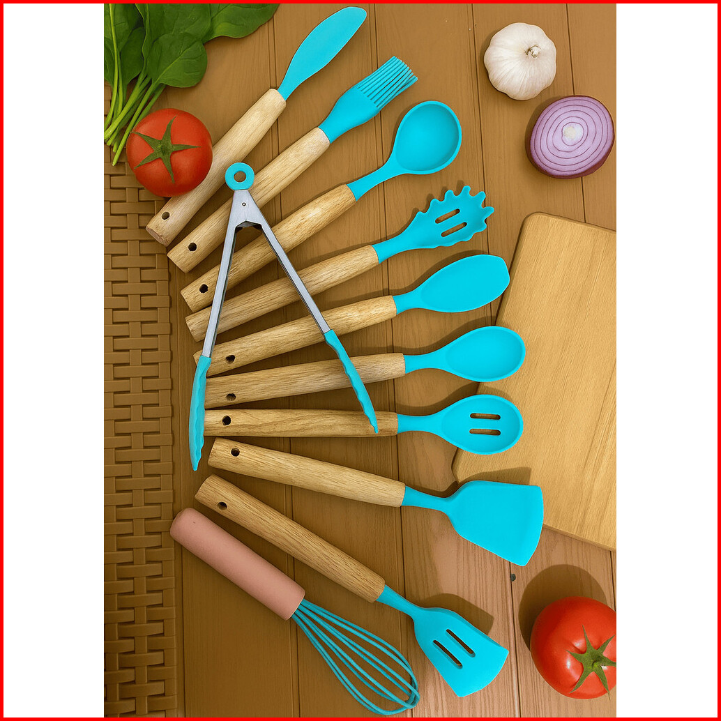 Spatula Silikon 12pcs Kitchen Set Spatula Alat Masak Dapur Tahan Panas Serbaguna Aman Praktis Murah