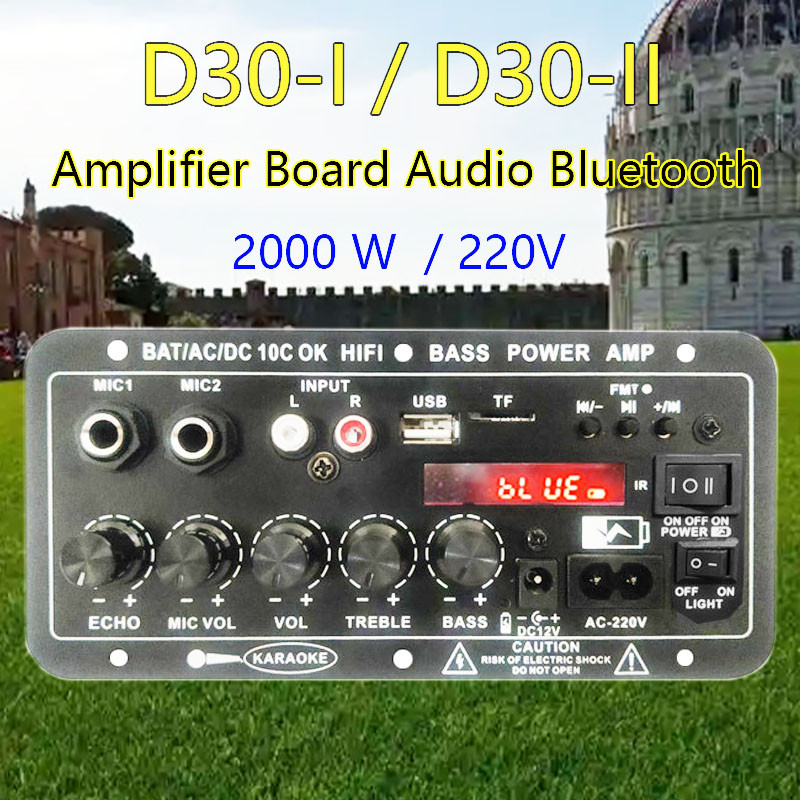 Papan Amplifier Bluetooth USB Radio TF DIY Subwoofer D30 D10 Karaoke Power Stereo Bass Audio Karaoke FM 8-12 Inci 2000w