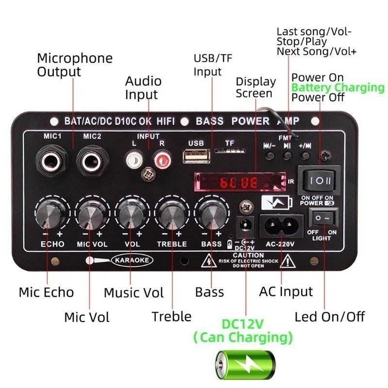 (Stok Tersedia)Bluetooth Amplifier Board 220V 12V 24V Digital Bluetooth Amplifier Amplifier Stereo Subwoofer 30-120W