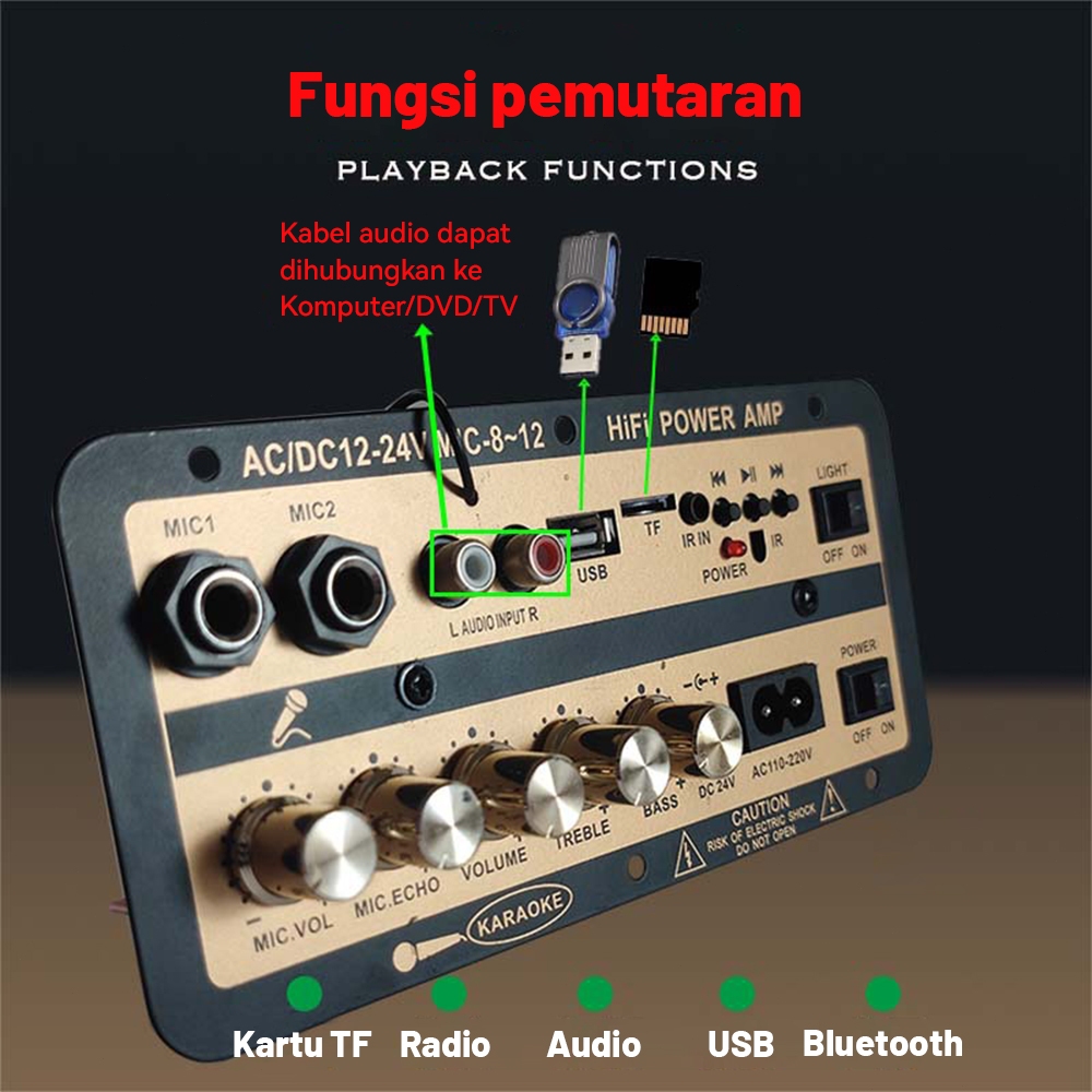 D30 Amplifier Board Karaoke Audio Bluetooth USB FM Radio TF Player Subwoofer AC-DC Fitur Komplit / ul board / papan ampl