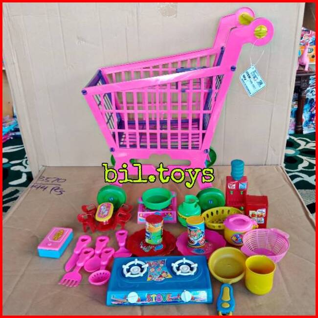 Mainan Anak Perempuan Mainan Troli Belanja Mainan Anak Trolley Stroller Keranjang Masak Masakan Besar