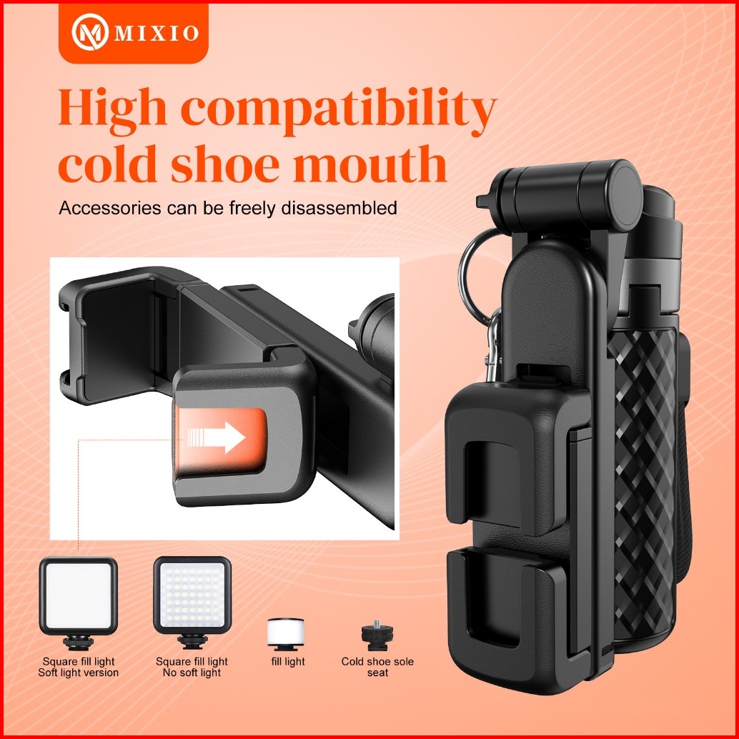 Mixio A16 Extendable Pocket Grip Tripod Mini Selfie Stick Remote Control Tripod 3 In 1 Tongsis Tripod Bluetooth