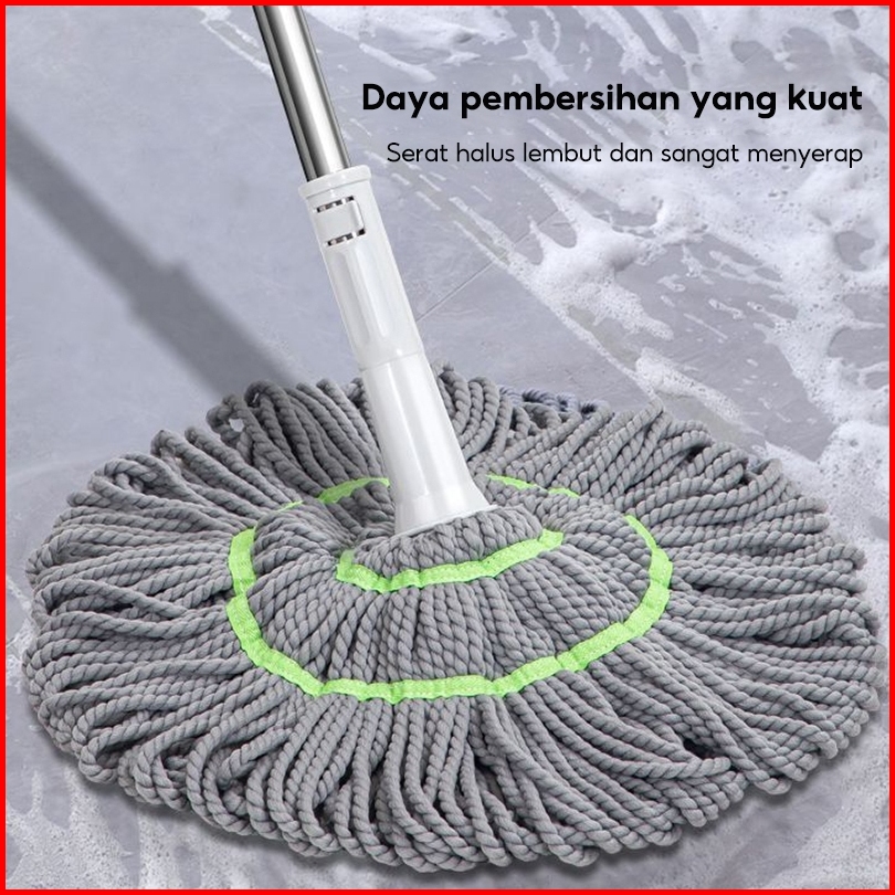 Lejumall Alat Pel Lantai Putar Otomatis Daya Serap Tinggi Twist Mop Microfiber Lepas Pasang Kain Peras Putar Lap Pembers