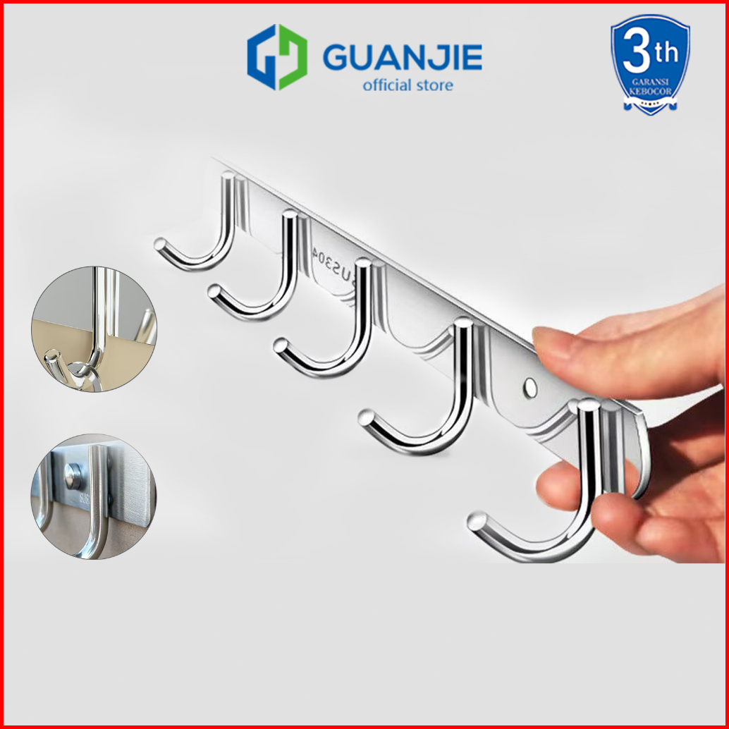 Guanjie - Gantungan Baju Stainless 3 5kait Tempel 3m Stainless Sus 304 Hook Hanger Hook Alat Gantungan Gantungan Tempel