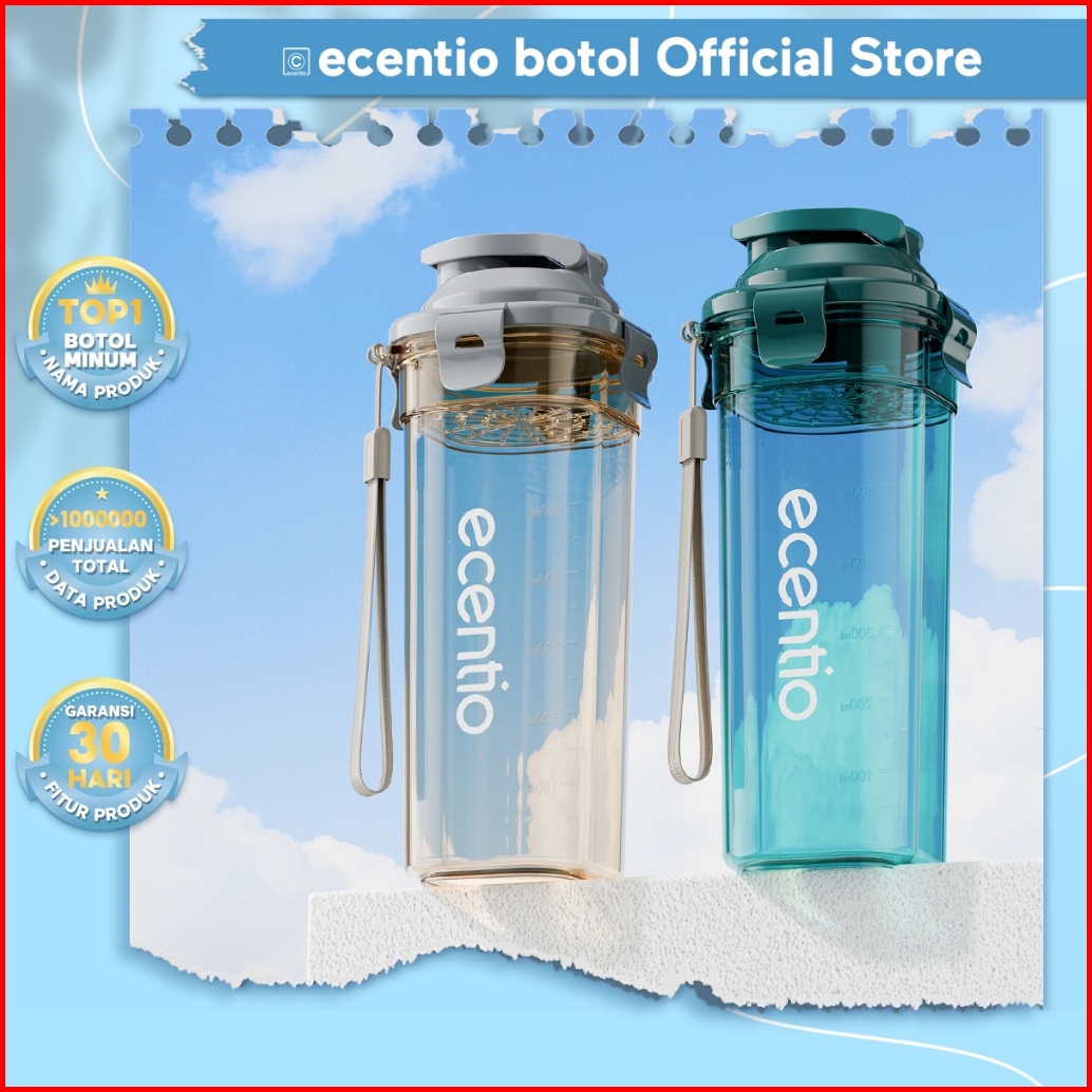 Ecentio Botol Minum Portable 500ml Olahraga Kantor Sekolah Bpa Free Sport Anti Bocor Botol Transparan Free Hand Lanyard