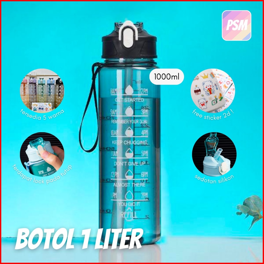 Psm Botol Minum 1 Liter Viral Gradasi Anak 1liter My Bottle Murah Tempat Minum 1000ml Dewasa Sticker Motivasi 1l Korea