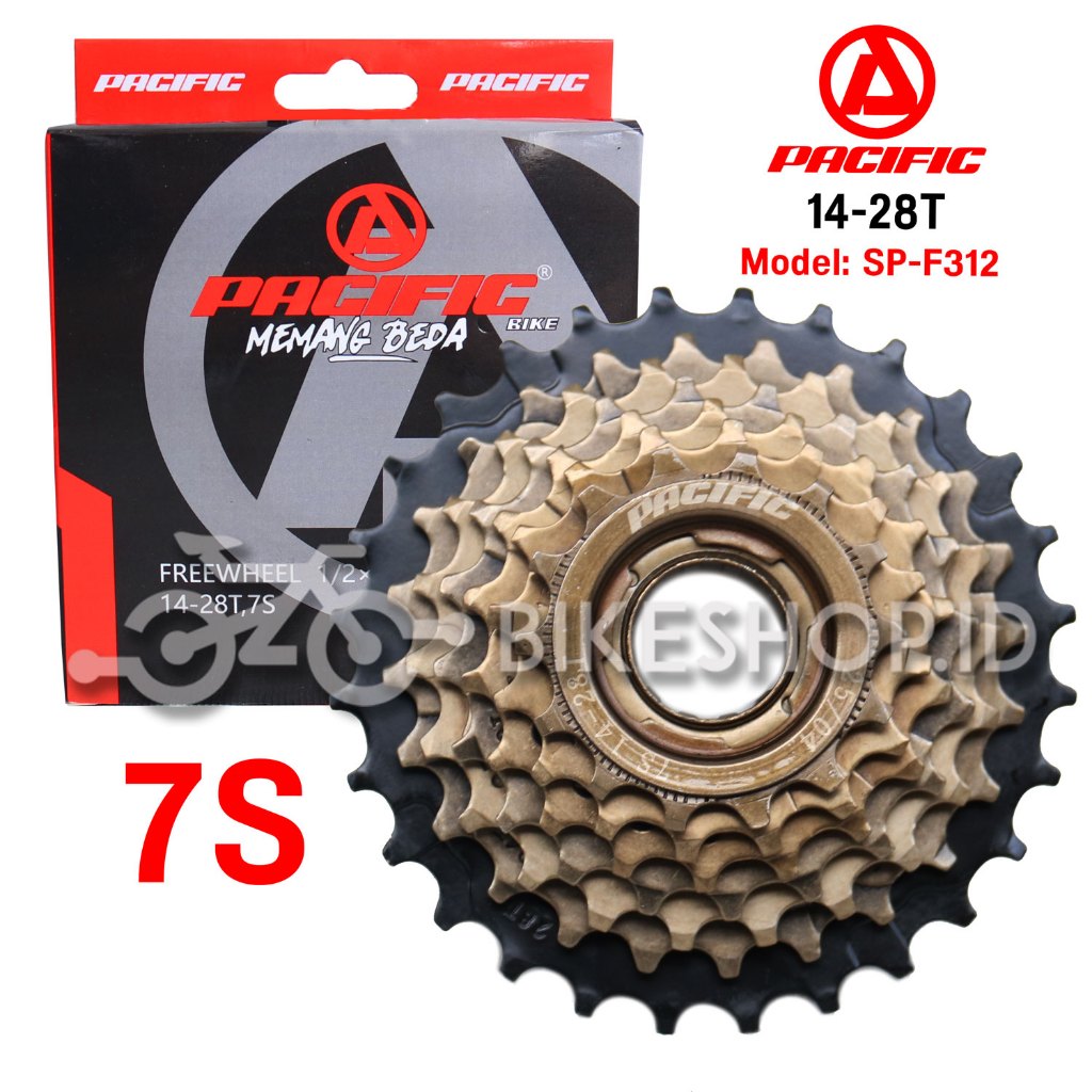FreeWheel / Sprocket Gear PACIFIC Sepeda 7 Susun Brown 1/2" x 3/32" x 7 SPEED | High Quality