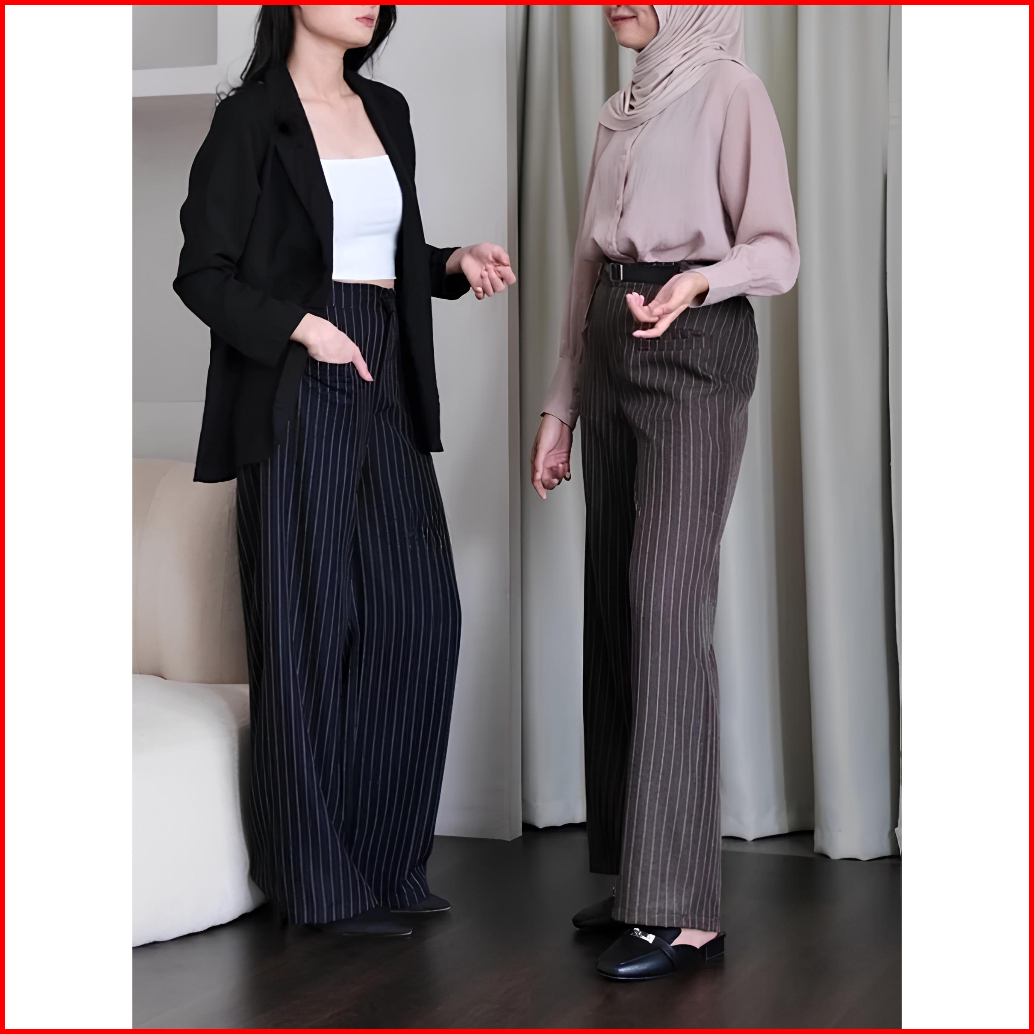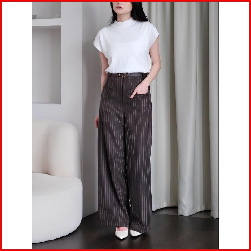 Elora Pants - Loose Pants Stripe Trouser Wanita - Celana Garis Kulot Casual Formal Ovalyn