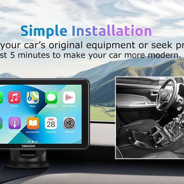 ESSGOO 7/9/10inci Portable Carplay Nirkabel Portabel Multimedia Mobil Layar Sentuh Monitor IPS FHD