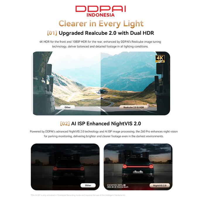DDPAI Z60 Pro 4K GPS 3 Channel Front & Rear Super Capacitor Dash Cam with 4G Connectivity