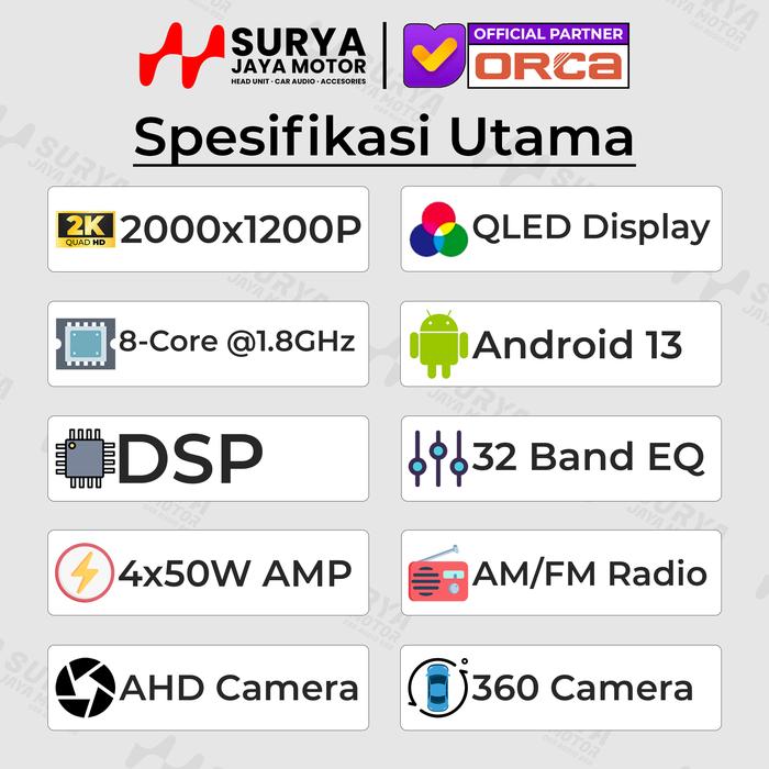 Orca HDX Lite 9 Inch 4/128 ADR-9510 Head Unit Mobil Android 13 Loseless Audio Cooling fan Voice
