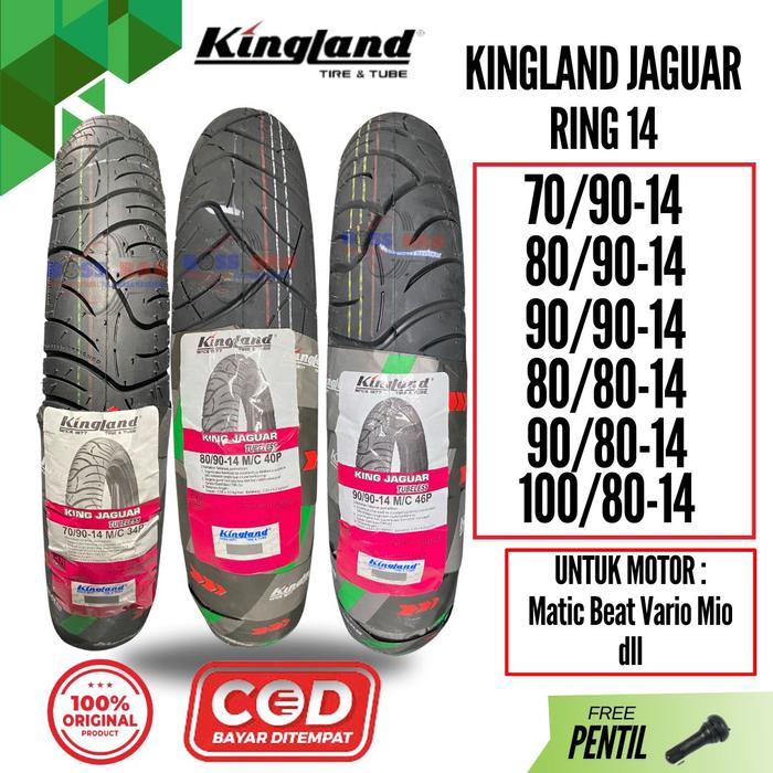Ban Kingland Jaguar Ring 14 Ukuran 70/90-14 80/90-14 90/90-14 Tubeless Asli untuk Motor Matic Beat