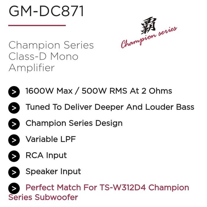 Pioneer GM-D8701, Pioneer GM-DC871 Champion Series