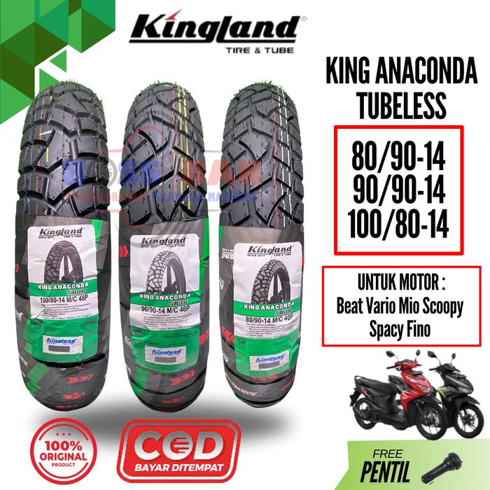 Ban Motor Kingland Anaconda Semi Trail Ukuran 80/90-14 90/90-14 100/80-14 Ring 14 Tubeless Original