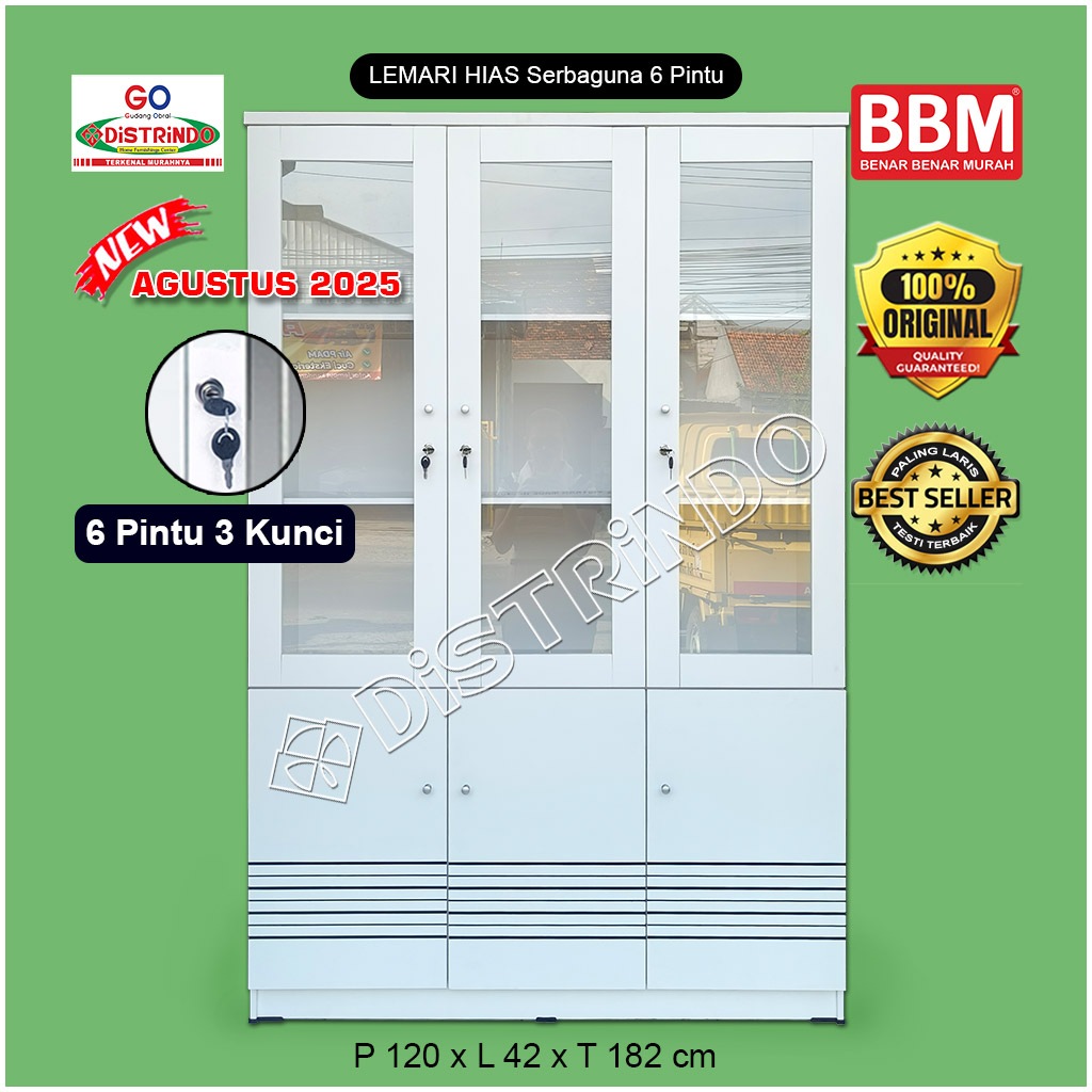Distrindo - Bufet Lemari Hias Etalase Pintu Kaca + 2 Kunci Serbaguna Untuk Tas, Kosmetik, Konfeksi
