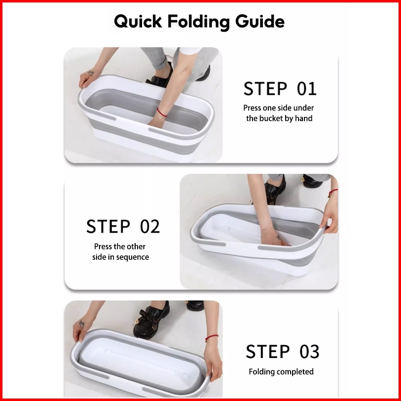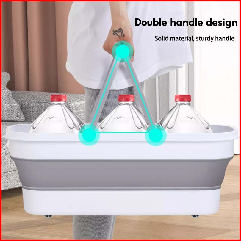 Lejumall Baskom Ember Plastik Lipat Portable Silikon Baskom Baskom Lipat Portabel Tempat Cuci Alat Pel Lantai Multifungs