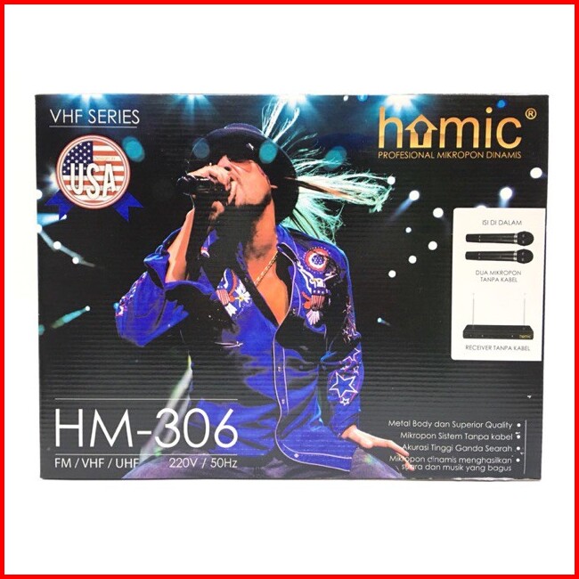 Mic Wireless Homic Hm-306 Microphone Double Mik