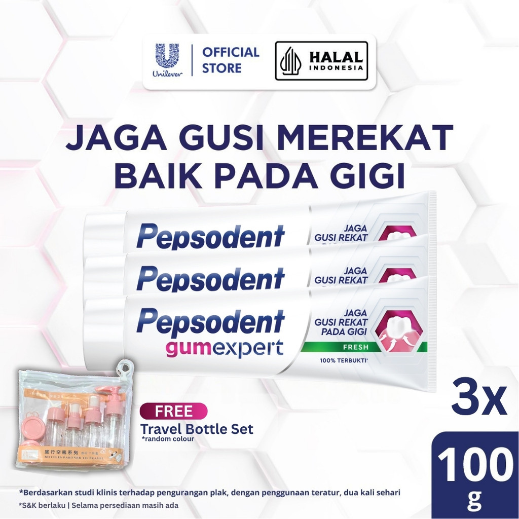 Buy 3 Pepsodent Toothpaste Pasta Gigi Gum Expert Fresh Jaga Gusi Rekat Pada Gigi 100g FREE Travel Bottle Set