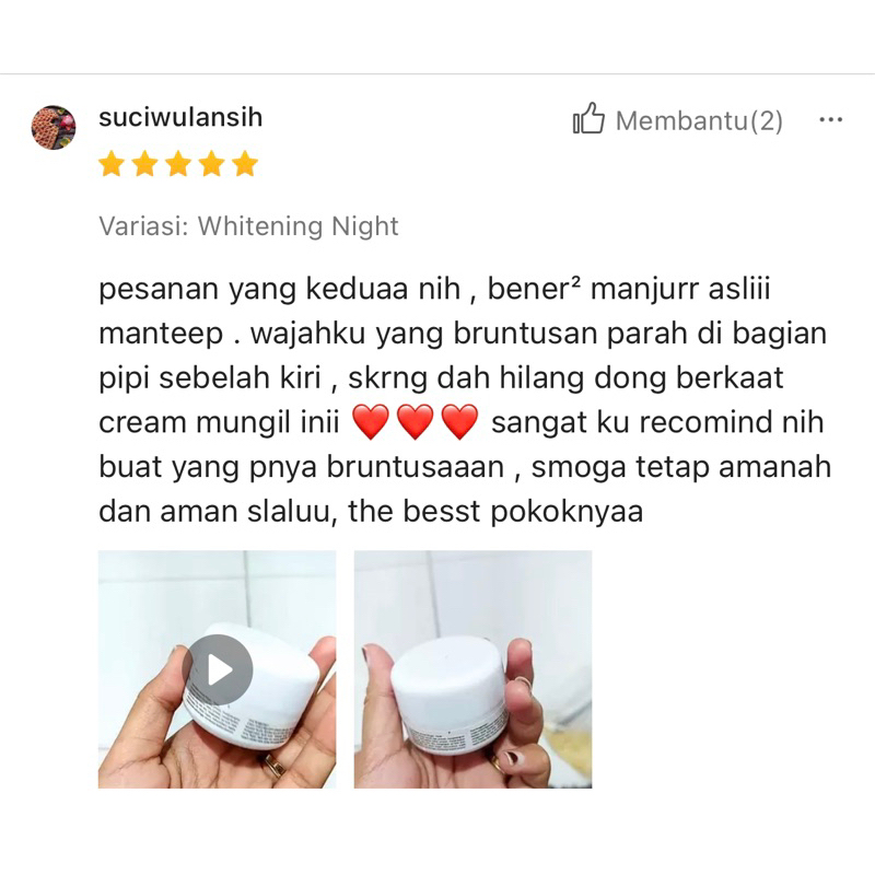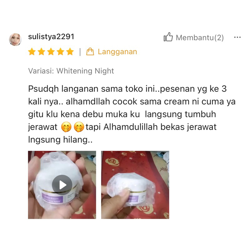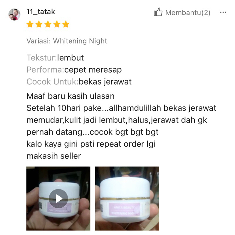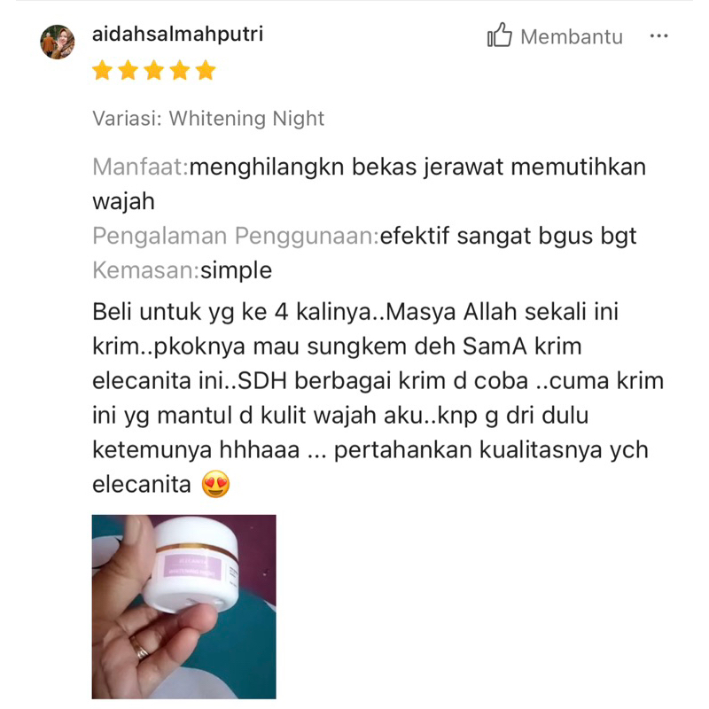 Whitening Night Cream Pencerah Wajah Kudam Beruntusan Jerawat Ringan Pemutih Bekas Jerawat Glowing Flek Hitam Elecanita