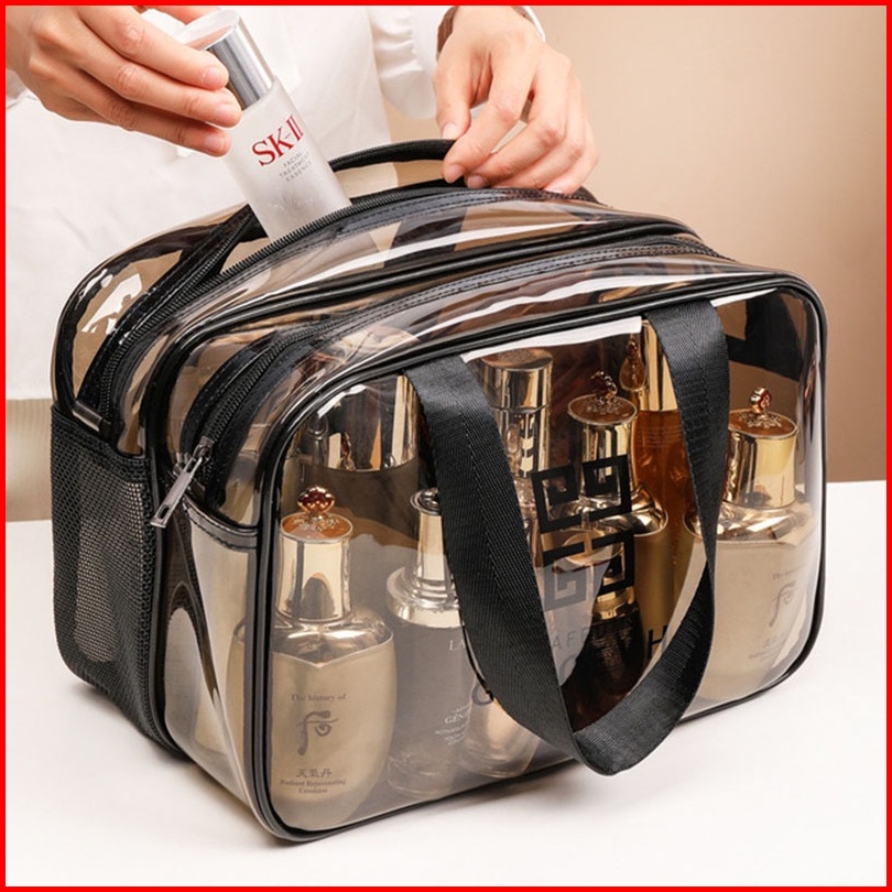 Tas Kosmetik Double-layer Jumbo Transparan Tahan Air Kapasitas Besar Portabel Pvc