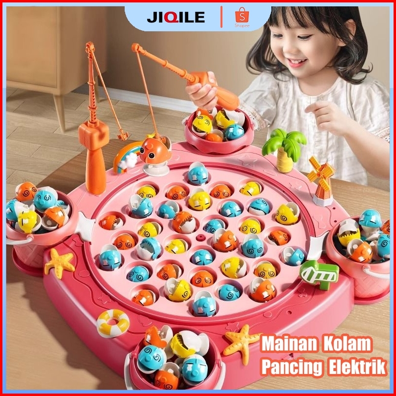 Jiqile Mainan Anak Pancing Magnet Mainan Pancingan Ikan Set Mainan Edukasi Anak