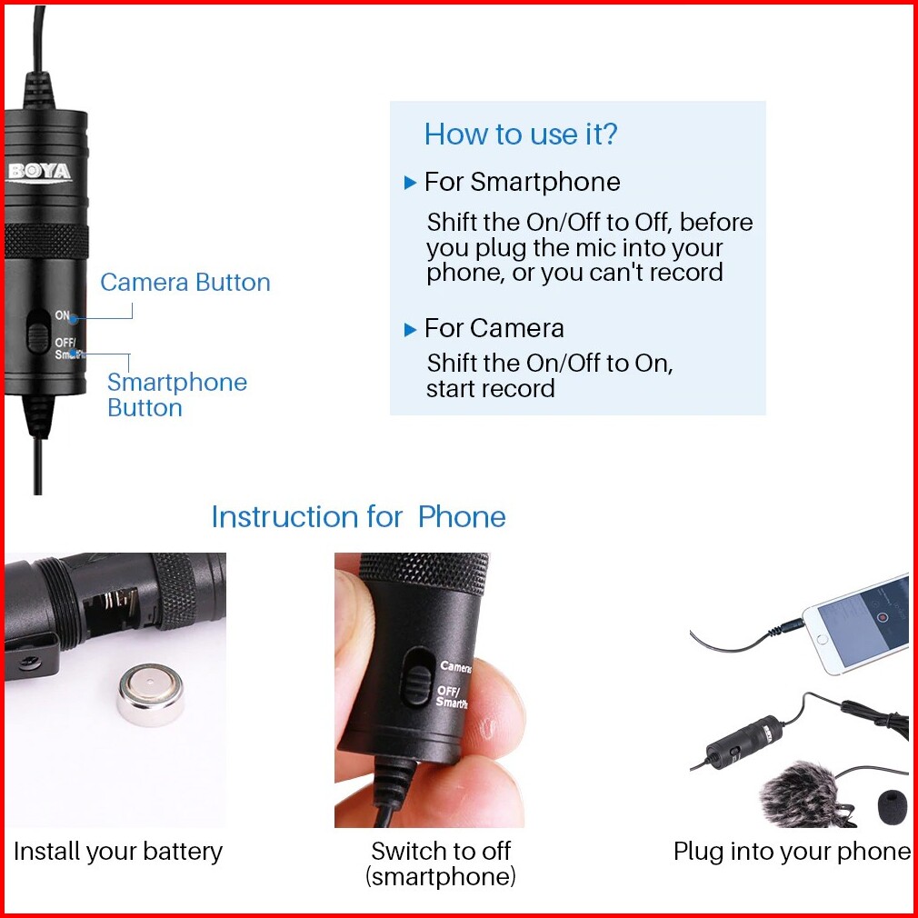 Microphone Boya By-m1 Omnidirectional Lavalier Microphone Suara Jernih Berkualitas